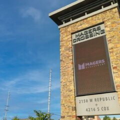 This new retail center is located in the South Springfield, MO market. A hard corner development, Magers Crossing has three buildings totaling ±54,000 SF and offers mixed uses of Restaurant, Retail and Office. The two story building facing Cox Road has ±14,740 SF of office on the second floor. There is currently 1 unit remaining on the main floor of the Cox Road Building. Current estimated NNN charges are $5.60.